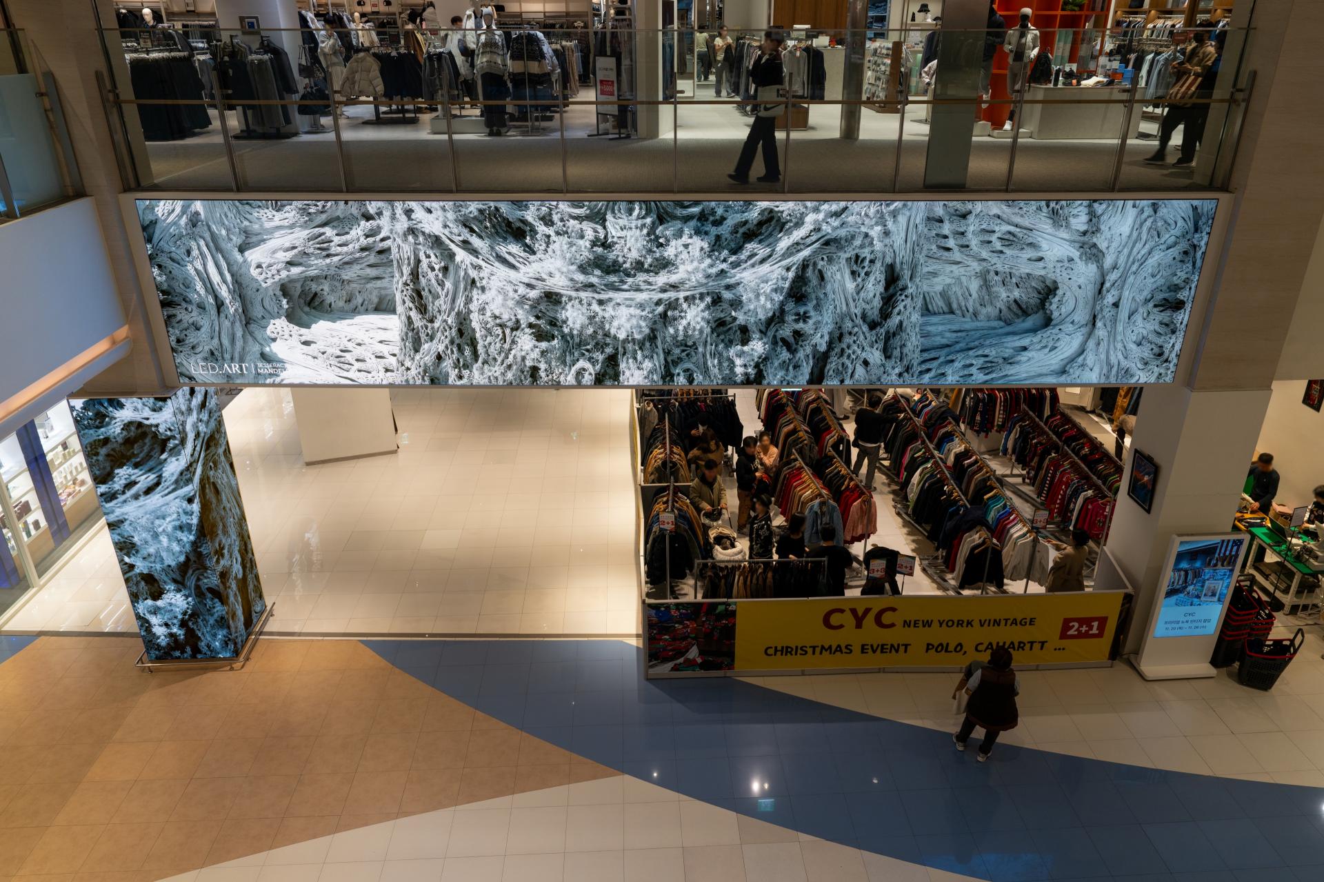 Through LED.ART’s curation, the content adapts to both seasonal rhythms and spatial context, adding a refined sense of flow and moments of visual pause within the shopping experience.